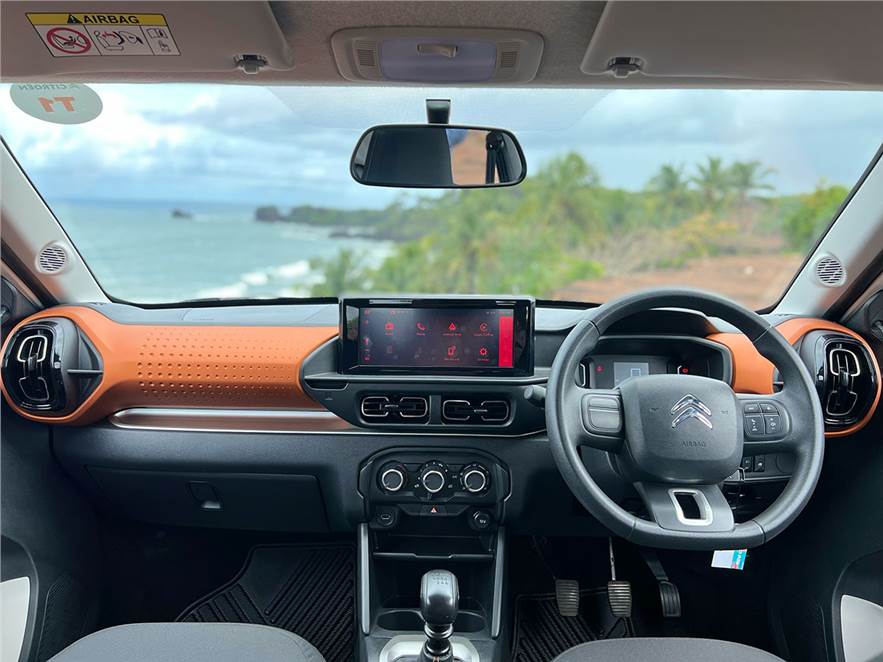 There are car brands that believe in throwing the kitchen sink when it comes to offering tech features. Citroen is clearly not one of them. The highlight of the C3’s not-so-long feature list is a 10in infotainment system that sits on top of the dash, and is easily visible to all passengers.