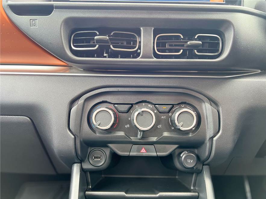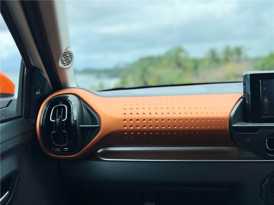 There’s an equal dose of flair inside the cabin, especially if you’re to choose the zesty orange variant. It starts with the textured surface on the passenger side that is hard to miss, and feels good to touch. The AC vents have a funky geometric design, and the chunky AC rotary knobs have a satisfying old school feel to them as they click into place. Citroen has also been generous with spaces and pockets to store your phone and other knick knacks. There’s also a handy wire guide built into the dash, which is essentially a recess to tuck in your charging cable.
